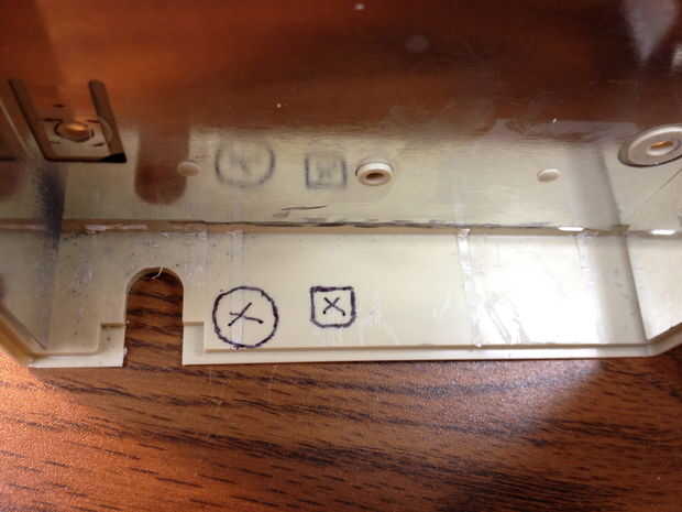 hice un patrón del detrás de la HD de LaCie para obtener el espaciado y tamaño de los agujeros que usted tendrá que hacer en el caso de la unidad de disquete. Lo hice cortando un pedazo de papel para encajar perfectamente en la abertura en la espalda y luego trazar los orificios. Corte los agujeros de la conector había colocado sobre los conectores de la unidad de LaCie, coloque la unidad dentro de la caja de disquete y, con cinta de pegar, transferido en el interior de la caja donde pude dibujar la ubicación del agujero que necesitaremos cortar.