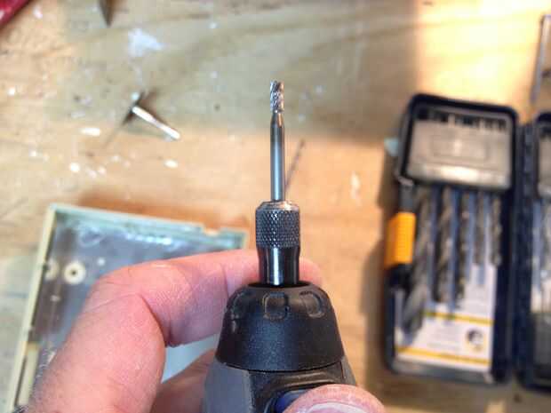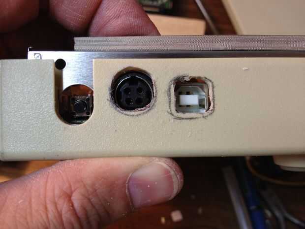 Utilizando la herramienta giratoria favorita, crear las aberturas necesarias para acceder al poder y puertos USB en la parte posterior de la caja. Primero perforé algunos agujeros para retirar el material en el centro y para empezar. Luego usé la broca de fresadora para eliminar el resto del material. No trate de hacerla perfecta en el primer tiro. Tomar un poco de fuera y luego comparar poniendo en el soporte caso de LaCie y ver cómo alinean las cosas y qué debe eliminarse de la marca.