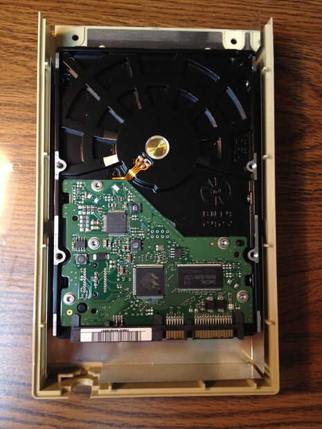 Ahora que los intestinos están fuera de la unidad de disquete se puede ver que hay suficiente espacio interior para un disco duro interno. Supongo que tenían la norma de 5.5" hace 30 años ya?!