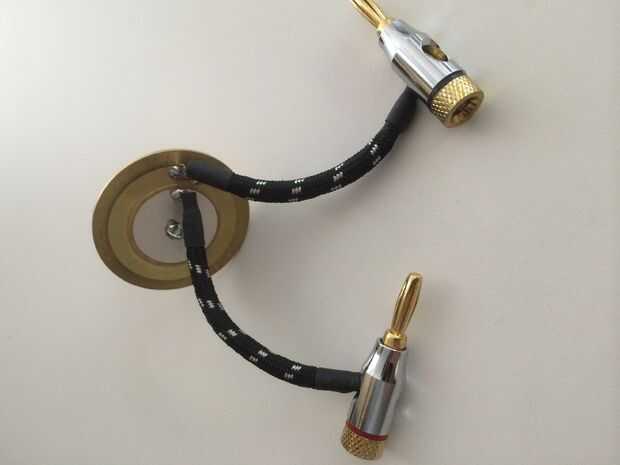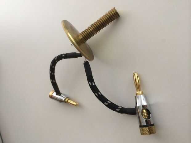 Si no te gusta el zumbido de 60Hz en su ruta de audio, el anillo exterior del piezo debe ser la conexión a tierra que se remonta en el mezclador. También, a veces es necesario aislar al altavoz piezo-por suerte el perno prisionero del metal que sostiene que el resorte tiene una buena capa de pegamento caliente que proporciona aislamiento eléctrico.
