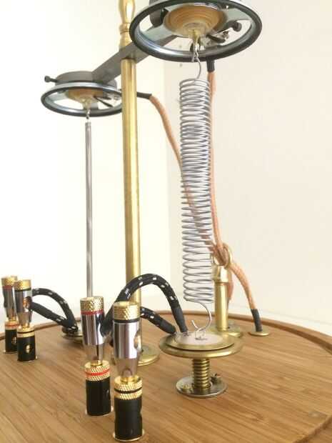 ¡Vale! ¡ Excelente! Así que tenemos resortes tensados entre los altavoces y los piezoeléctricos, y todos los asociados de cableado corriente en la base. Ahora ¿cómo nos conectes esta cosa?