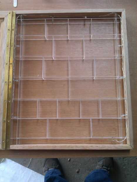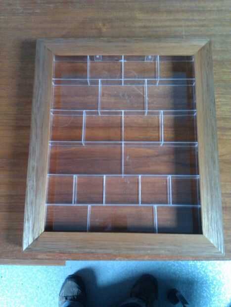 Empujó la cadena luz led redonda del borde del marco, para garantizar el LED que yo creo sobre las tiras de acrílico del lado de la perforación y empujando el LED de los agujeros pero decidido contra él al final, encontré que ellos se sientan bien si usé cuadrados de acrílico de desecho perforados con el LED a través de los orificios de descarga y solo colocado en posición , no pegados.