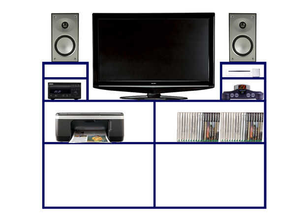 He tratado de dejar suficiente espacio futuros cambios de hardware, un día que puedo quiero cambiar mis altavoces o actualizar mi TV. Que tal vez tenga dispositivos que sólo fije temporalmente (por ejemplo una laptop docking estación/ipod cradle) y quiere diseñar una sección para dar cabida a.