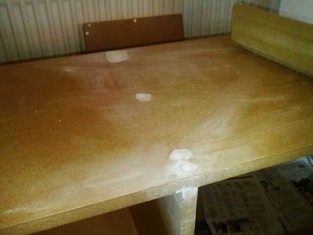 Llena en todos los orificios con masilla para madera, permitido 24 horas secar y lijar luego todo abajo para crear una superficie lisa
