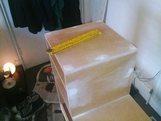 La siguiente etapa era una capa de imprimación MDF, prestando especial atención a los bordes y luego una capa de subpelo blanco en preparación para la pintura.
