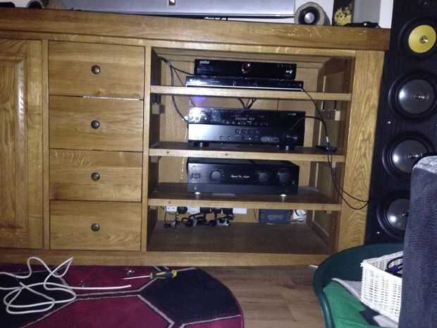 La limpieza de muchos alambres fue un poco de una tarea!! pero he hecho lo mejor que pude con la posición de algunos de los cambios podría hacer con un largo cable de cat5 a la caja de tv desde el router y un HDMI más largo para el amplificador a la tv pero aparte de eso todo es bueno.!