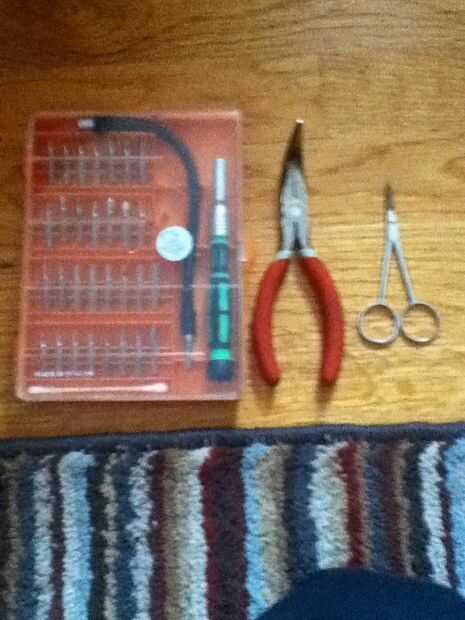 usé un destornillador alicates, tijeras y cuchillo y tamaños variables. Ten cuidado