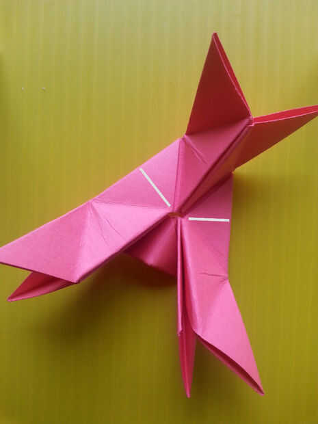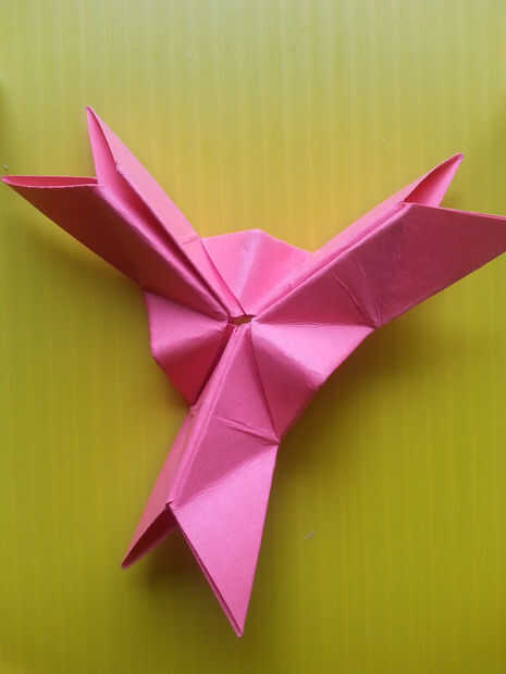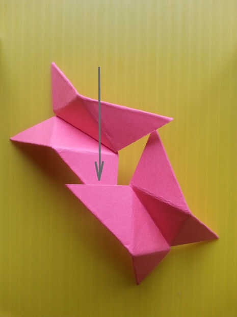 Añadir un tercer módulo, que hace tres que se unen en un punto. Tres bordes, un vértice. Los pliegues de los módulos ya se unió a pueden cerrarse más ajustado para que sea más fácil insertar el módulo siguiente.