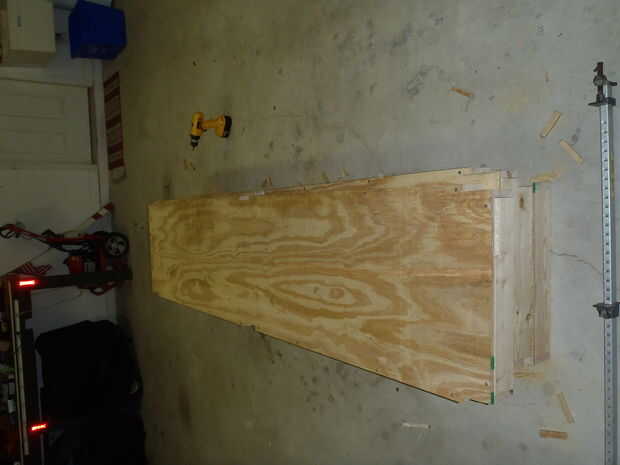Montar los marcos, cubierta con madera contrachapada y corte muescas para las mortajas y conejos. La tarima se une con 1 1/4" caña del anillo clavos para techo.