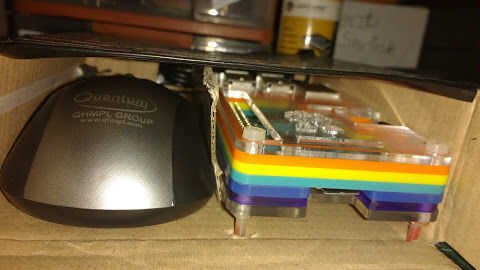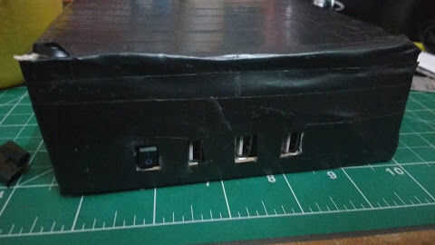 4. Con ayuda de la pistola encoladora pegar la pieza en el lado del pi haciendo un pequeño compartimiento para mantener la batería o el ratón.