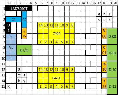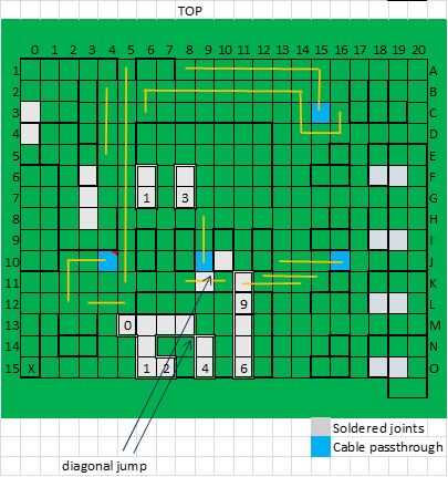 Esta es una descripción áspera de donde encuentra cada componente (descrita en el paso de los materiales) dentro de la Junta de soldadura tengo. Si no tienes un tablero como el mío (21 x 15 pins), su proyecto podría diferir un poco de la mía. Porque este es el sitio web de bricolaje proyectos, estoy seguro de que se supone que suceda de todos modos.