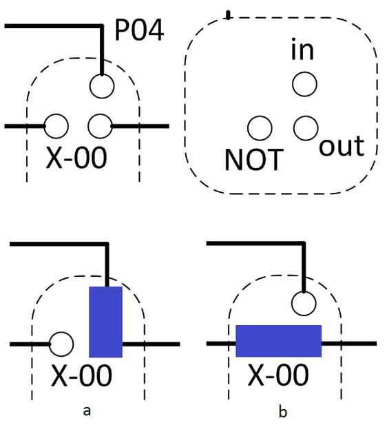 - Utilizando solamente un puente como se indica en b), se potencia la puerta no pero no la otra lógica de I.C.