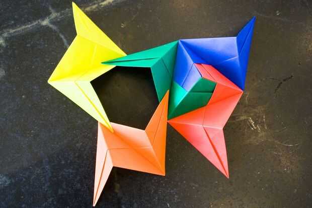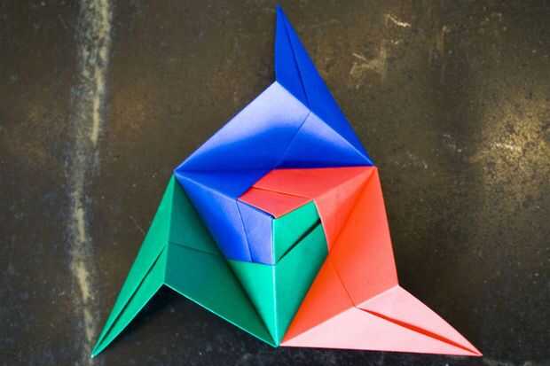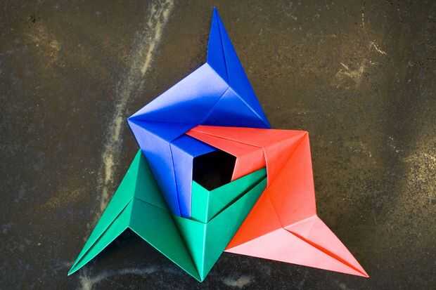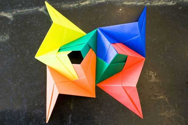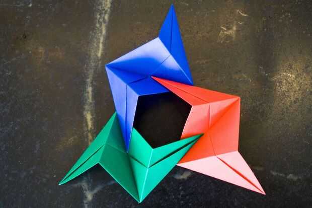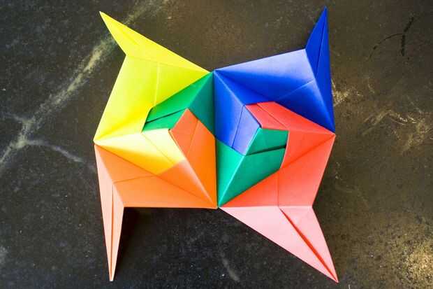 La pieza acabada de origami modular a continuación es un Octaedro estrellado con 12 unidades de Sonobe.