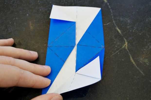 1 pliegue la parte inferior derecha en la esquina izquierda inferior.