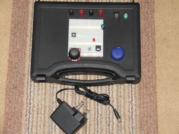 y aquí tenemos la unidad acabada, ahora cuando tengo ganas de jugar con un circuito, todo lo que necesito es en un solo lugar, con la configuración mínima de tiempo y todo es portátil.