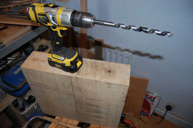 Para fijar las patas a la parte superior que no quería que un empalme fijo como la unidad sería demasiado pesado, así que decidí utilizar tacos de 100mm que mantener las piernas en el lugar correcto con la parte superior y minimizar el tormento. He marcado y había perforado unos agujeros de 12mm en las piernas y superior caiga en algún bar de 12mm roscado cortar con una sierra para metales.