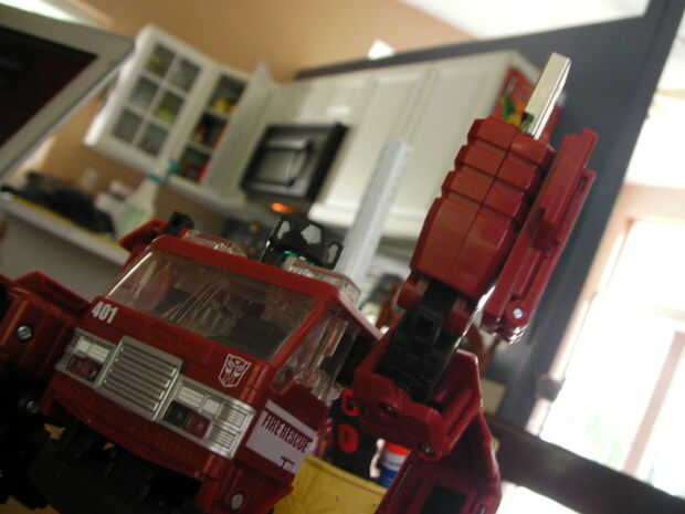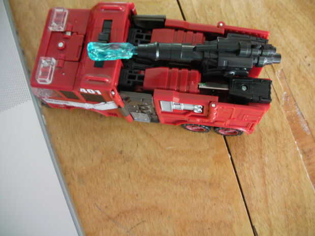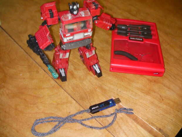 Transformador, los transformadores son muy fáciles de modificar y añadir cosas demasiado porque tienen piezas voluminosas que son huecos y se pueden tomar aparte con un destornillador. Encuentra uno con brazos de tamaño decentes, lo suficientemente grandes como para adaptarse a su dispositivo de salto en. Y asegúrese de que se lleva a cabo con tornillos no pegamento. Además Asegúrese de que el brazo sale con un empalme desmontable. Usé un remake de la original juguete de Inferno. Si no quieres dañar el transformador, puede usar su arma... un montón de opciones