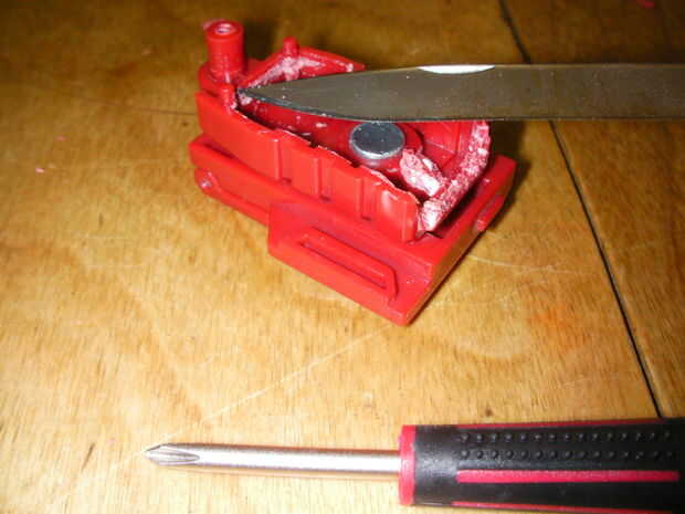 4. Si hay clavijas de plástico o bloques en el borde de donde va el circuito, les tallar lejos hasta que el circuito se adapta apenas a la derecha.