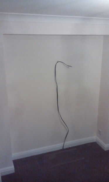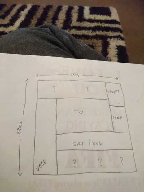 Como se puede ver en la imagen tengo una sección de corte bastante grande de la pared en mi salón, así que me decidí que intentaría llenar tanto como pude.