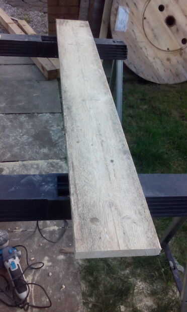 Usé una sierra circular como mi desplazamiento Sierra cortes solamente un máximo de 200mm y tablones del andamio son 225mm.