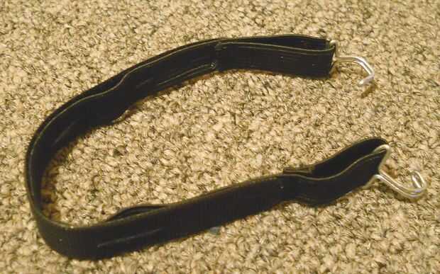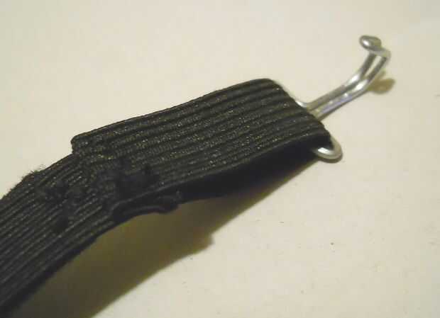 4. Si encuentra mejores ganchos, sujete adecuadamente en caso contrario, deslice el elástico a través del lazo de los ganchos. Asegúrese de que se enfrentan a la manera correcta (lejos del lado del Velcro).