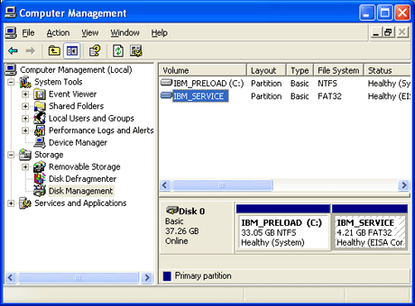 En la ventana Administración de equipos, seleccione "Administración de discos" [situado bajo almacenamiento, cerca de la parte inferior de la ventana].