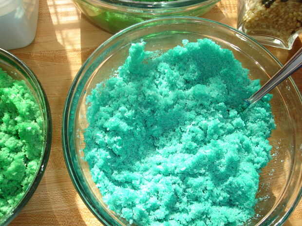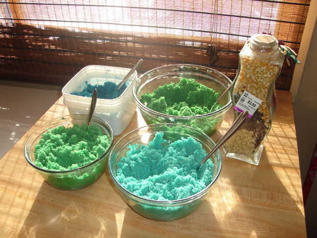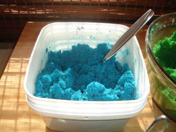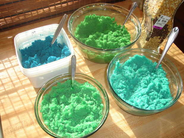 Encontré que si había trazado en papel de pergamino, el papel impregnado el color de la comida un poco. Sitll trabajó, pero quería tanto pigmento en la arena como sea posible. Así que, vuelva a teñido it... añadido más verde. El verde salió más oscuro, trabajado gran!