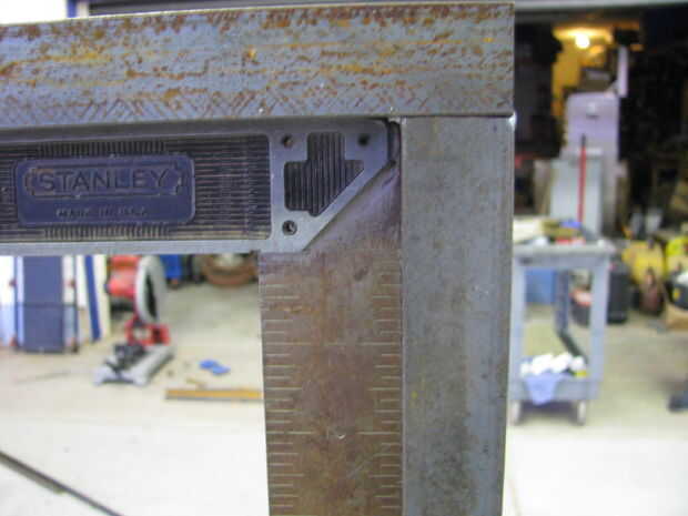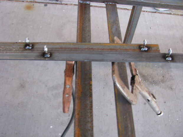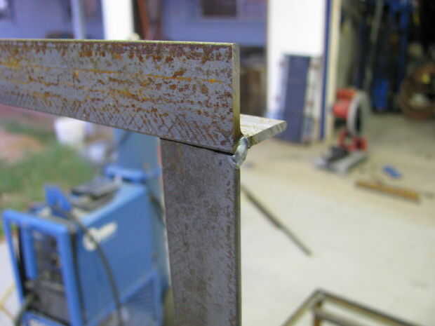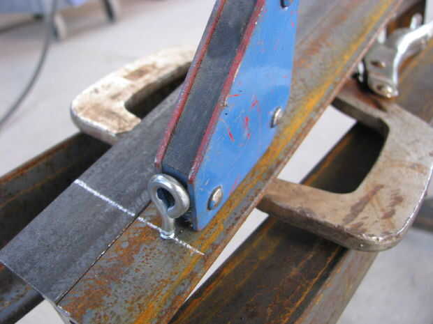6. Coloque el brazo en el vertical usando un gran imán de soldadura. Juntar las dos piernas planas del ángulo.