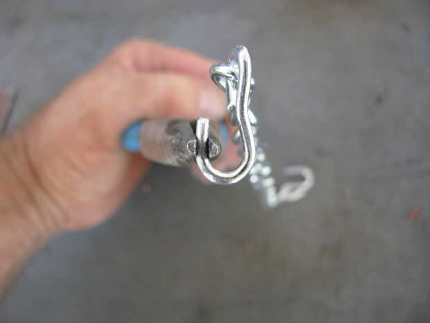 10. usando un par de alicates de punta y la cadena de queso que viene con las luminarias, difundir Abra el enlace final y engánchelo en un montaje de la cadena.