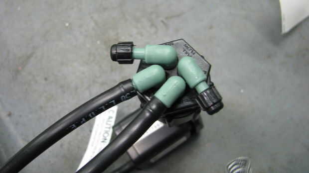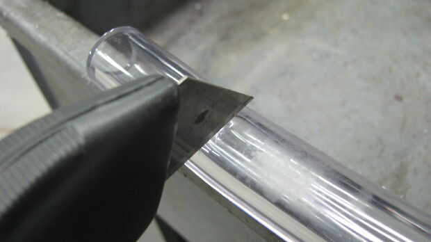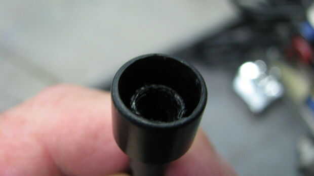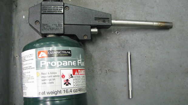 14. con la antorcha del propano, calentar el punzón cónico (máximo 2 segundos!) y se usa para estampar hacia fuera del final de la línea de poli en el adaptador.