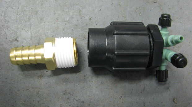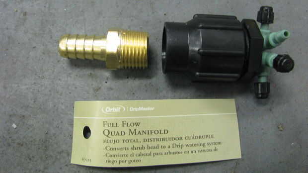 2. 1/2 lengüeta de la manguera de 1/2" MPT y el colector quad.
