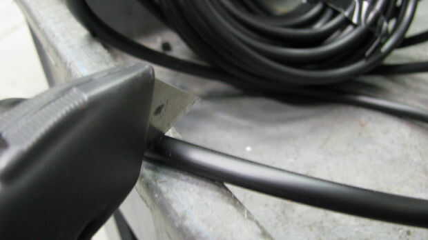 11. fuerza de los extremos de la salida de las líneas de suministro a través de los ojales en las artesas.