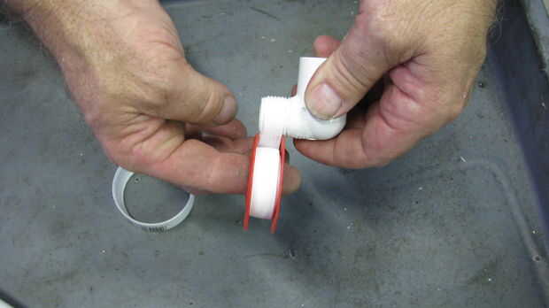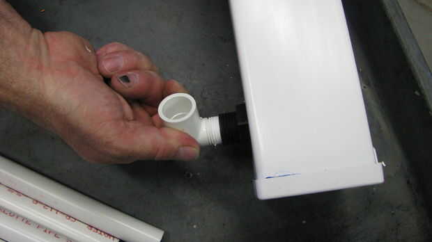 14. aplicar una pequeña cantidad de cemento para PVC alrededor del borde exterior de la canaleta y deslice la tapa. Esto es para evitar la eliminación accidental de la tapa, en lugar de pérdidas.