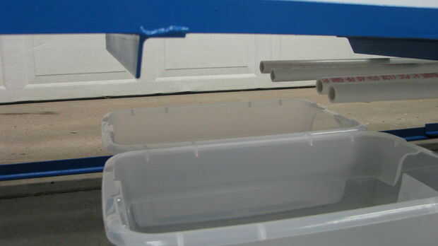 17. Coloque el tanque de nutrientes por debajo de las tuberías de cuatro drenaje. Si sólo utiliza un tanque, gire 90 grados por lo que todas las tuberías de drenaje cuatro están por encima del solo tanque.