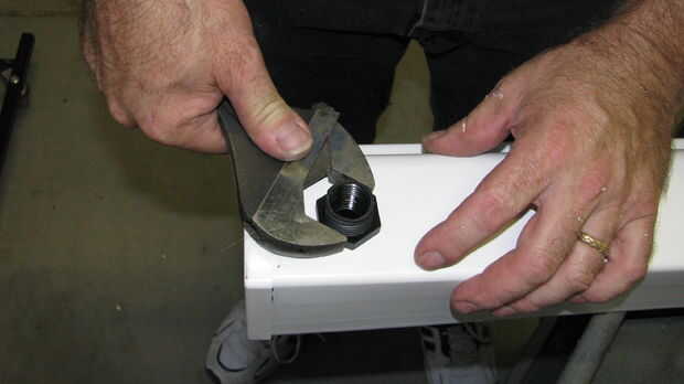 11. durante la prueba he encontrado que las tres vueltas de cinta de teflón no fueron suficientes para sellar el codo en el desagüe de refrigerador del pantano.