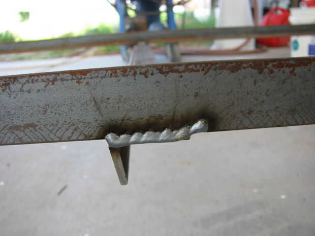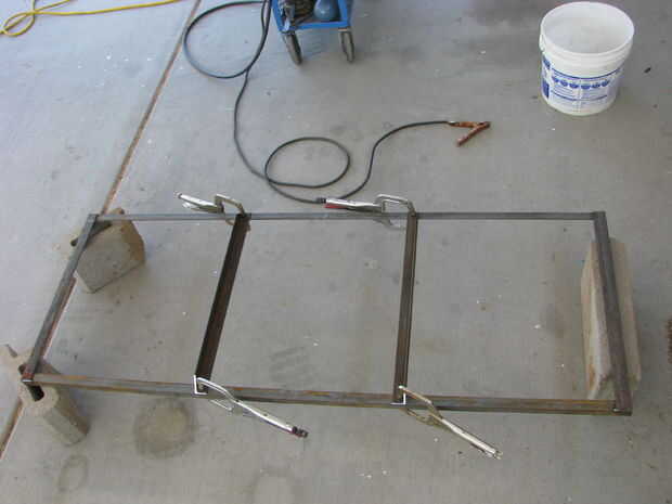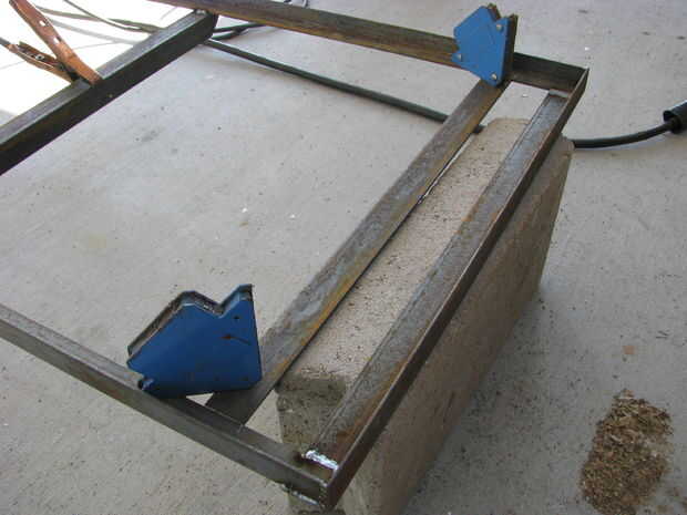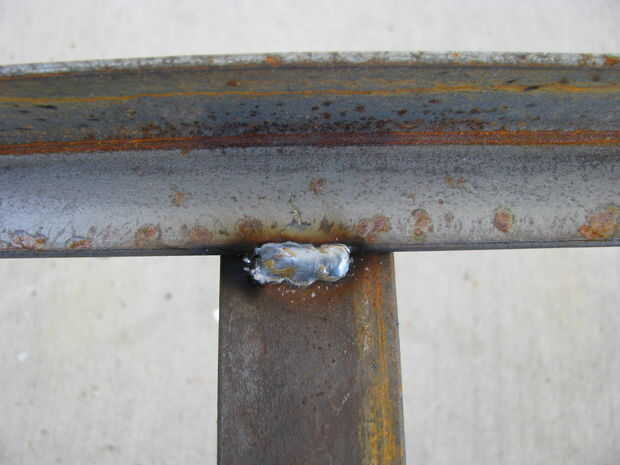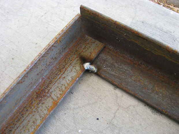 6. soldar el tubo transversal a la de desde el exterior. (El marco había sido volteado lado derecho arriba en esta imagen.