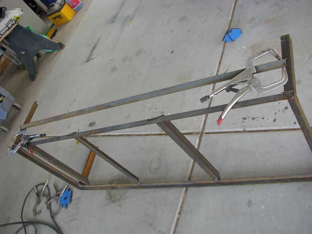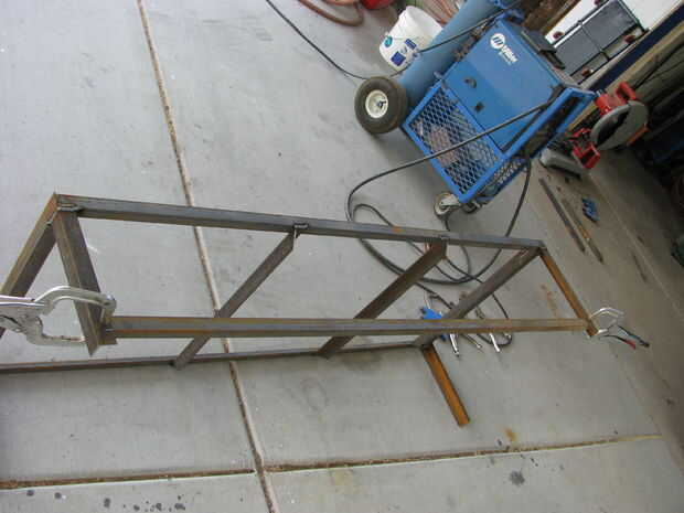 1. medir una pieza de hierro de ángulo para caber dentro de las piernas. Mina fue 60"