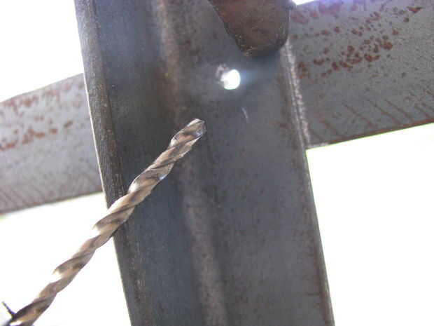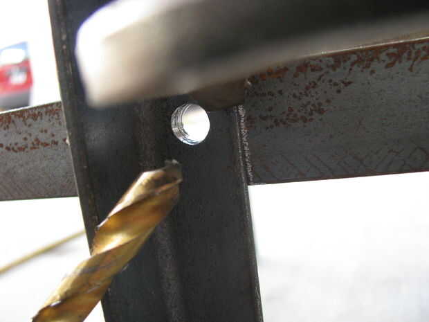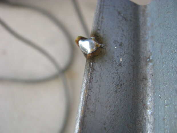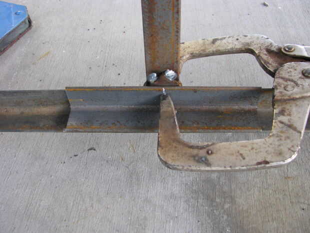 10. cuidadosamente soldar cada retenedor a la parada. Esto permitirá que el poste se deslice fuera de la abrazadera trasera y a deslizarse fácilmente en. Eliminará la necesidad de un tornillo en la parte inferior. Realmente podría utilizar este método para la sujeción del vertical en la parte superior del marco de la así, pero elegí a perno de seguridad.
