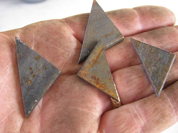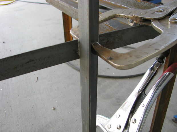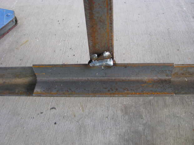 8. desde la parte posterior de los rectos, cuidadosamente virar la parada a la vertical. Luego quitar y soldar con cuidado la punta del triángulo en la parte frontal de la estructura vertical.