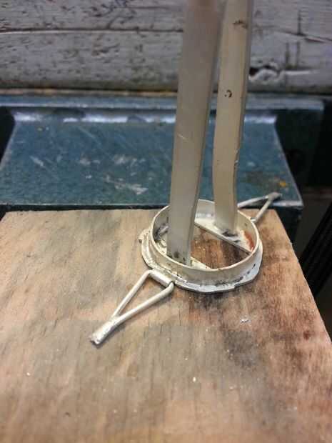 La placa USB está conectada a la carcasa con dos cerraduras con lazos de alambre con bisagras y media bolita de plata soldada a la carcasa.