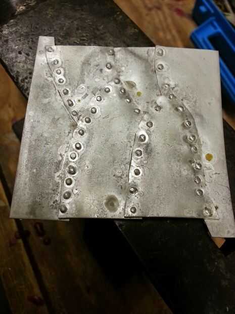 Luego, las placas fueron soldadas con soldadura dura para reforzar las conexiones para luego doblar.