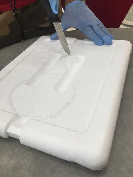 Cortar la tapa del refrigerador creando dos agujeros que previamente sólo fueron dibujadas con lápiz.