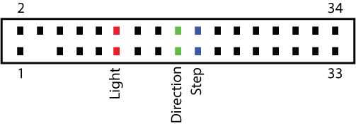 PIN 18 (y su conector de tierra 17) controla la dirección del motor de paso.