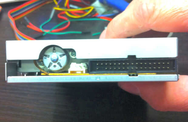Pin 12 (y su conector de tierra 11) son la unidad seleccione pin, esto iluminará las unidades de luz cuando se activa, si cable pin 12 directamente al pin 11 en que la luz quedaría. Utilizaremos el método de cable directo en la prueba más adelante, pero en el cableado final que quería hacer la luz viene de cuando la unidad estaba activa por lo que relaciona pin 12 el mismo alambre que funciona el Pin de paso por lo que cuando el motor se enciende la luz.