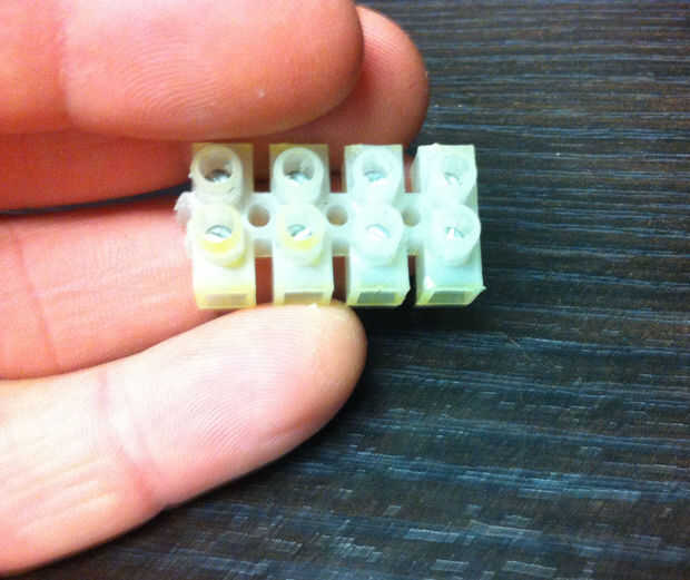 Utiliza un bloque conector para unir todos los cables de tierra y luego un cable de puente único de ese bloque conector que entonces puedo conectar el conector de tierra de la Arduino. Tienes algunas de las configuraciones de 3 cables para hacerlo girar.