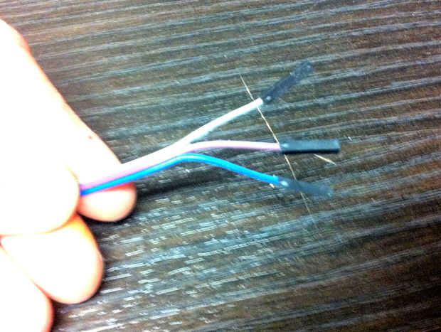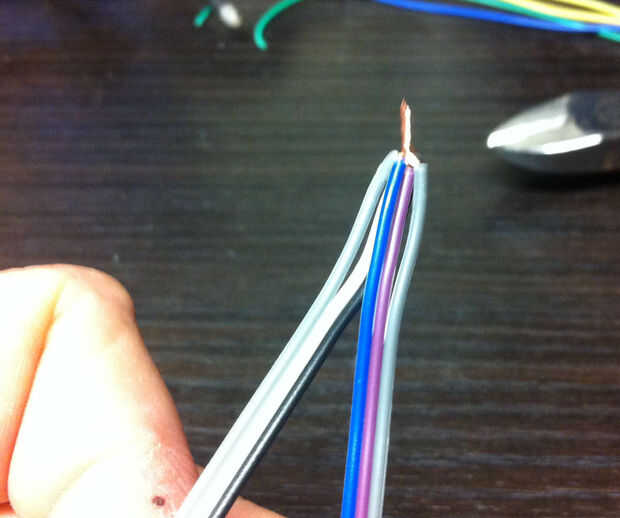 Sacar un conjunto de 3 cables del cable de cinta de cables de puente de y cortar los conectores en un extremo y el aislamiento de la tira. Trence los cables y poner a un lado, tendrá 1 juego de 3 cables de esta manera para cada unidad de disco flexible también lo hacen todos. Estos serán utilizados para los pernos de tierra, que será poner al conector de tierra de la Arduino.