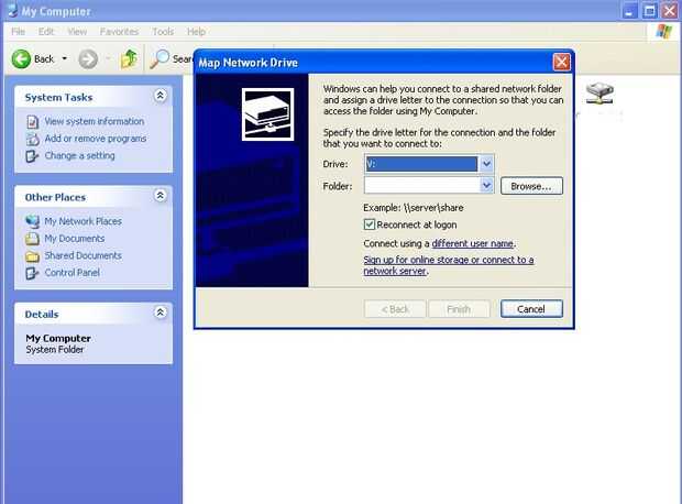 Esta pantalla debe subir. Ahora tengo algunas unidades ya en uso así que mina comienza en V:, pero debe empezar el tuyo en Z: si es posible. A continuación, haga clic en examinar y continuar con mi siguiente paso.