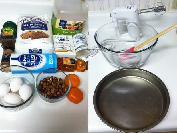 Paso 3: Ingredientes y materiales necesarios para hacer el pastel de naranja avellana miel
