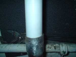 Usé desplazamiento conjunto alicates para prensar suavemente el borde superior del plomo alrededor del plástico para obtener un buen empalme aspecto aseado. Los tubos de plástico entra en la cabeza alrededor de una pulgada y está bajo una presión muy baja por lo no intención utilizando cualquier masilla o cinta de sellado.