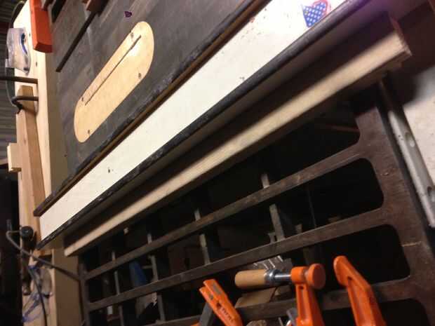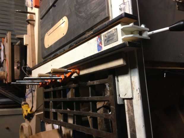 Deslice el tope-guía lejos y cerradura por el grosor (o un poco más) que el ancho de un lado de su rectángulo. Con un pedazo de pino suave como una valla como lo que tengo aquí, puedo hacer un poco más pequeña la brecha y las piezas para cortar ingletes se pegarán sólo cuando son perpendiculares.